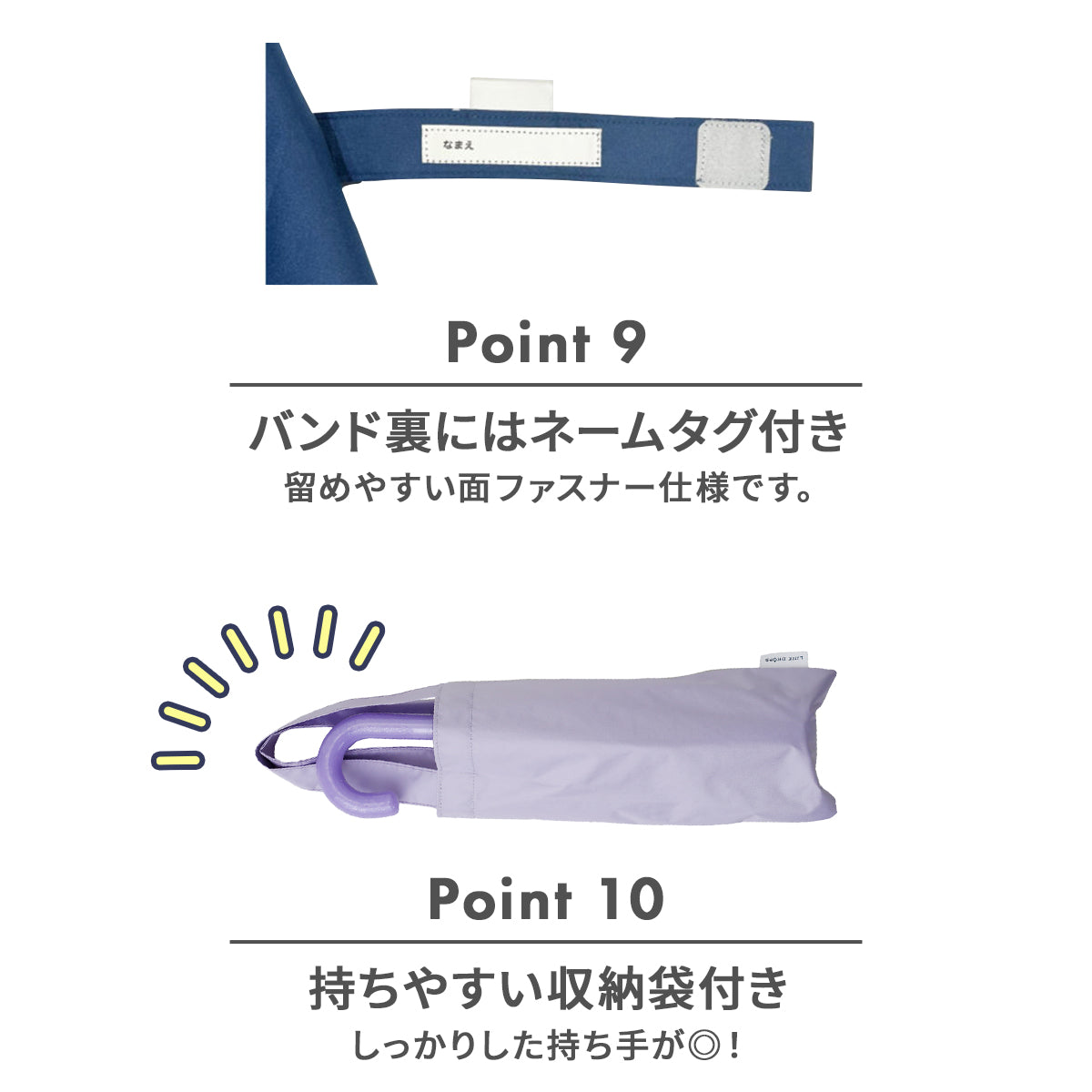 また、軽くて丈夫、さびにくいグラスファイバー骨を使用しているので、元気なお子様も◎!!