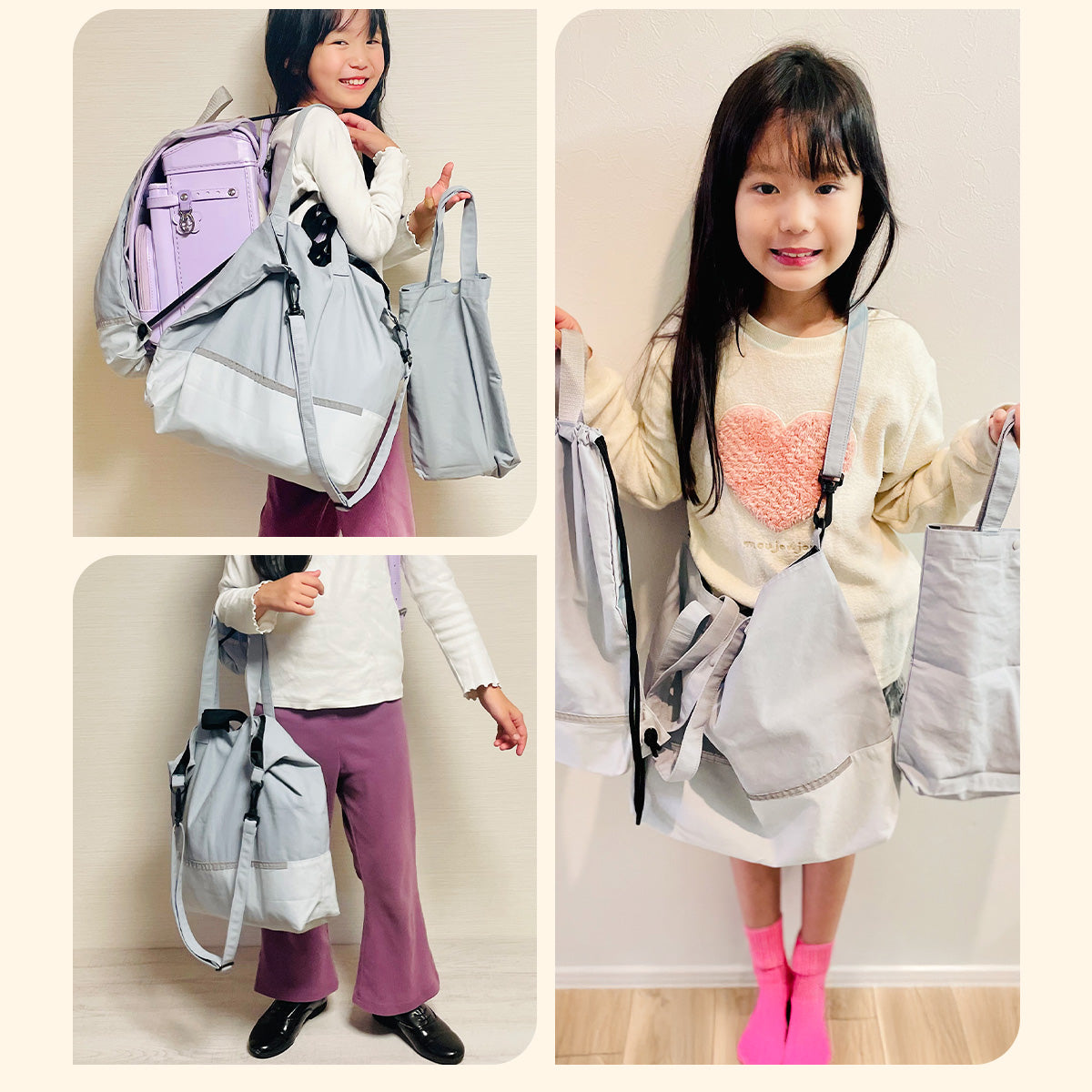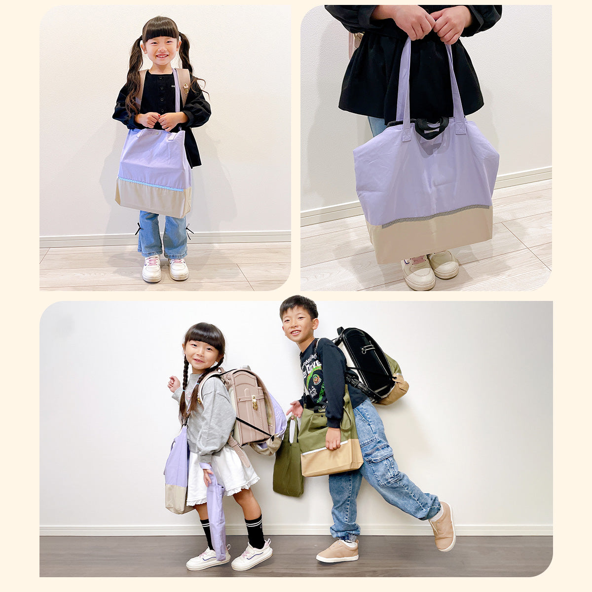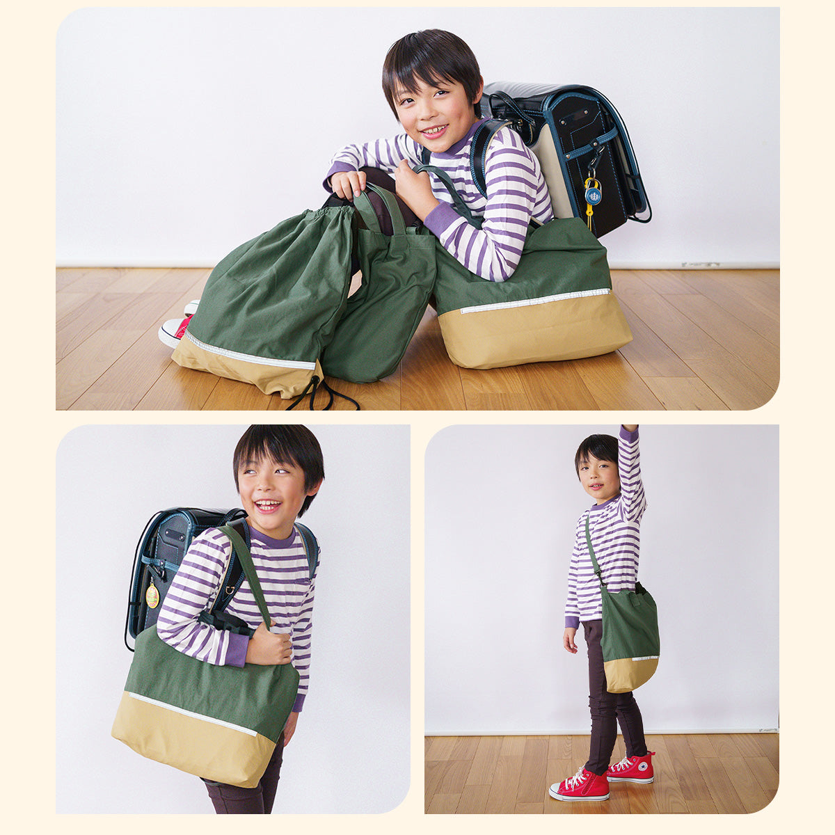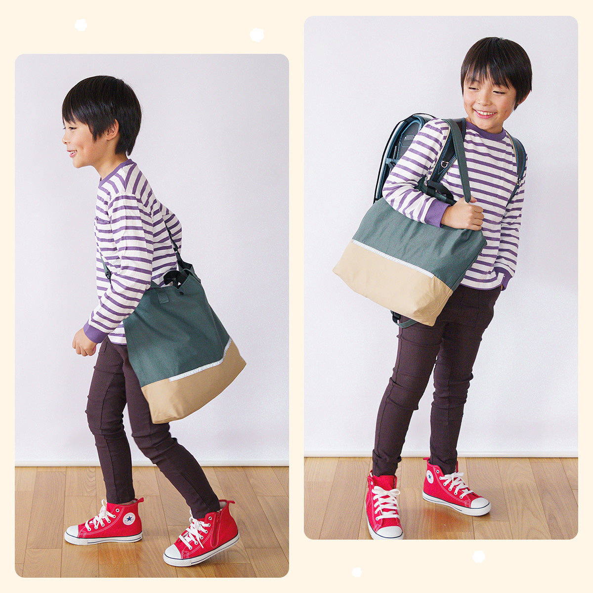 Haritiオリジナルのレッスンバッグは、入学を迎えるお子さまにぴったりのアイテムです。シンプルでおしゃれなデザインが魅力で、男の子も女の子も使いやすいです。ショルダー部分は取り外し可能で、リフレクター付きなので夜道も安心。学校の机に引っ掛けられるループや便利な内ポケット、底マチも備えています。持ち手は肩にかけやすい長さで使い勝手抜群です!