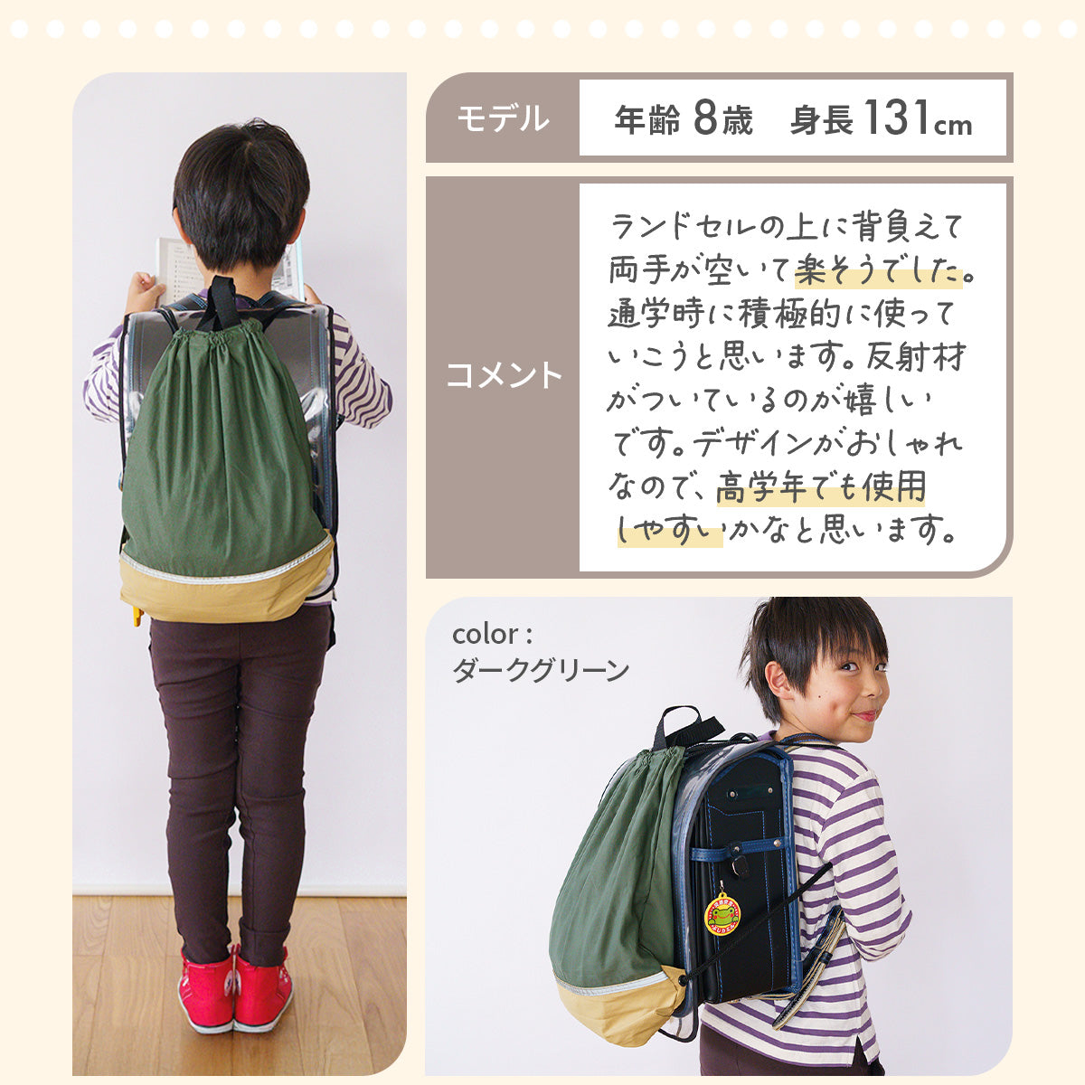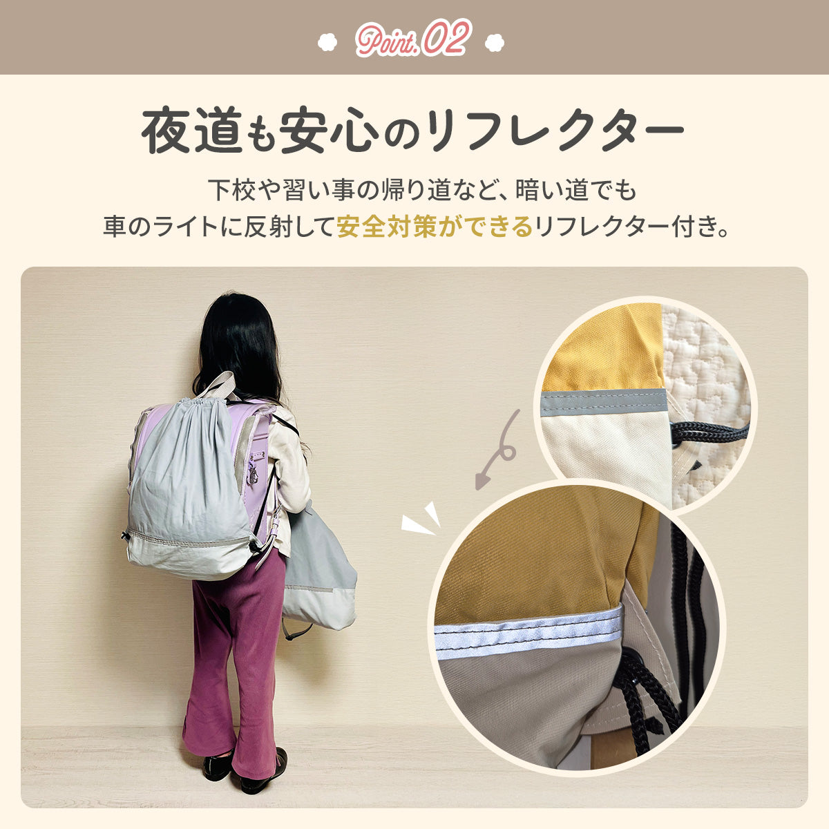 Haritiオリジナルのナップサックは、子どもたちの毎日をもっと楽しく、安全にしてくれるアイテムです。ランドセルの上から背負えるので、手が自由になり安心して通学できます。リフレクター付きで、暗い道でもしっかり目立ちますよ。さらに、肩紐はお子様の成長に合わせて調整可能だから、長く使えるのが嬉しいポイント。シンプルでおしゃれなデザインは、男の子も女の子も大満足です!入学の準備にぴったりの一品です。